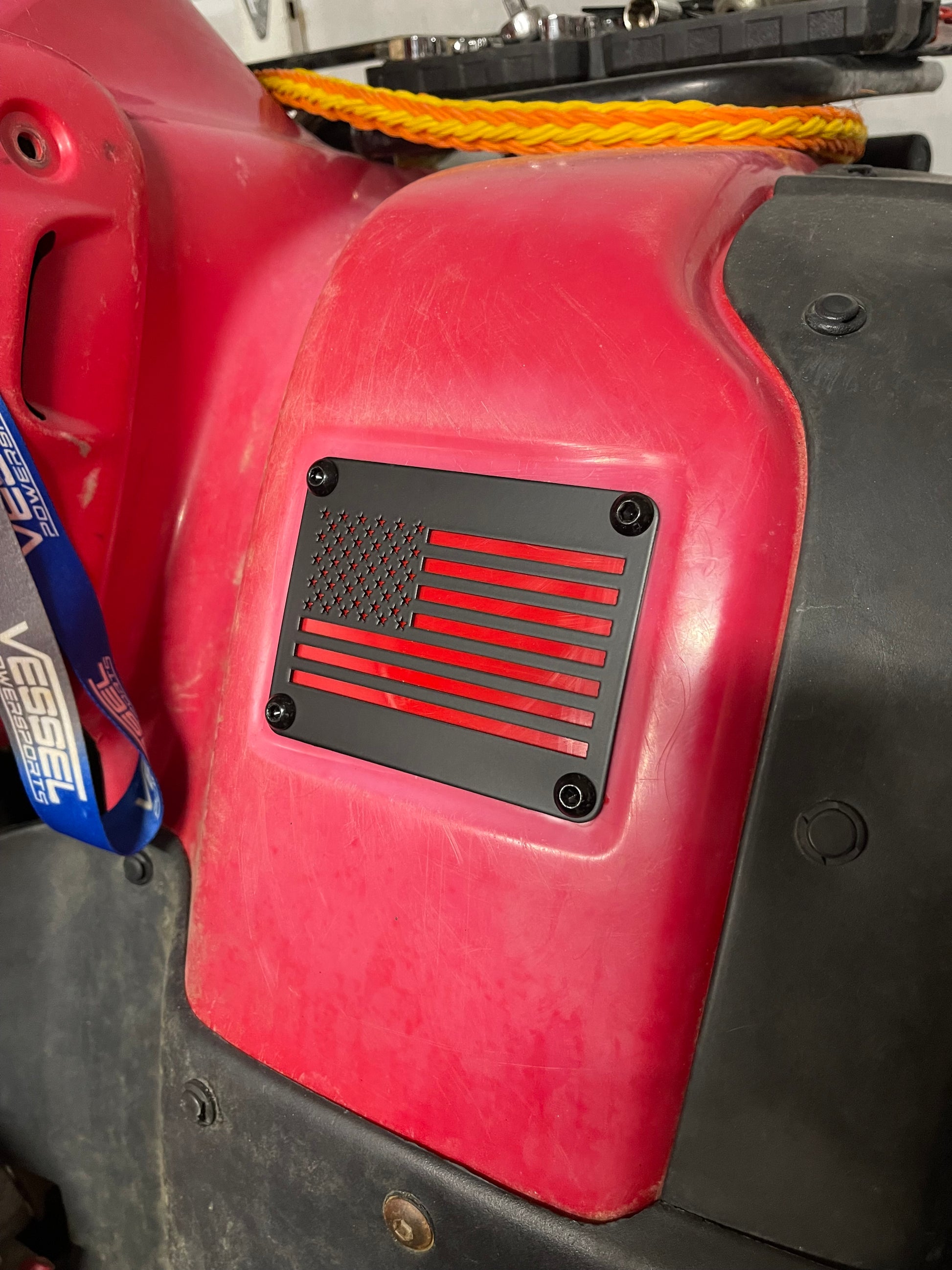 American Flag Honda ATV Fender Warning Label Delete Plate