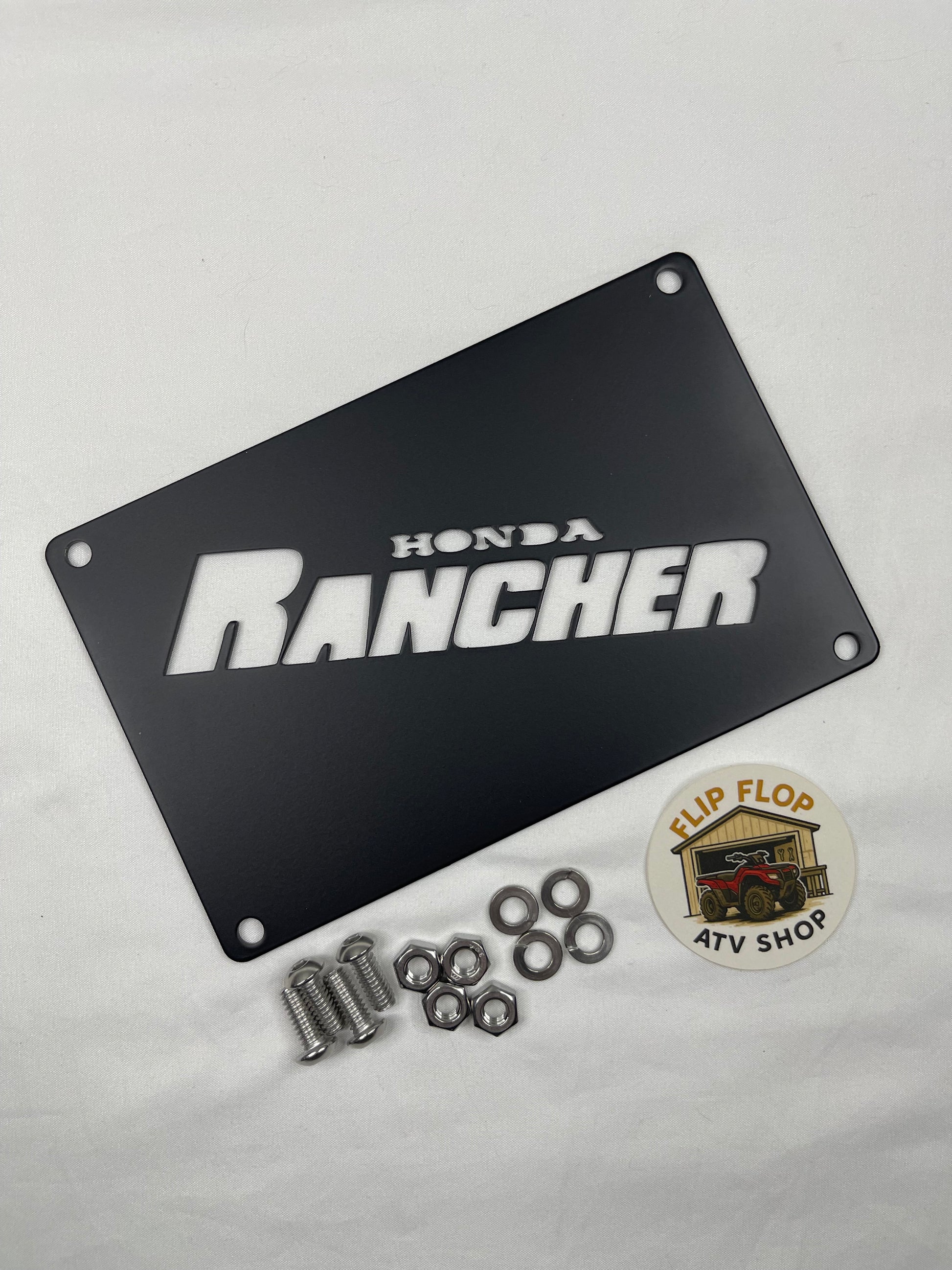 Add some flare to your Honda Rancher with this warning label delete plate! Fits all years of Honda Rancher, all hardware included.